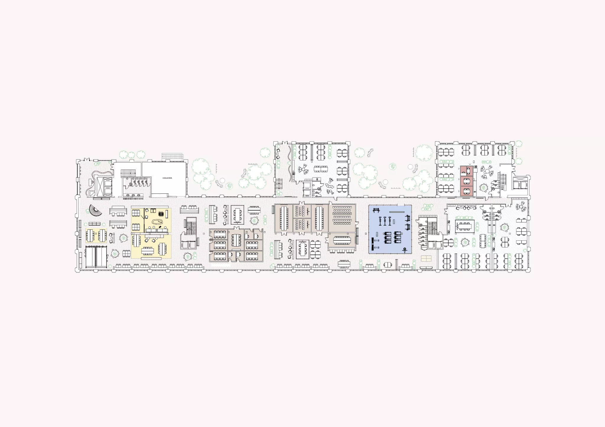 Restaurang, reception, konferensrum, lounge, gamingrum och gym.